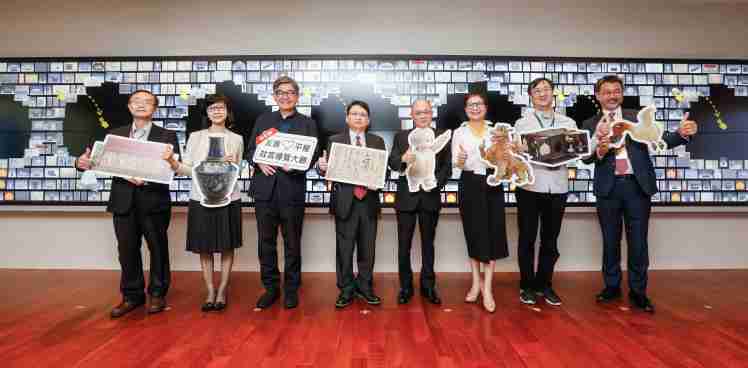 Wepay携手创利空间为故宫建置的智慧文物互动导览墙及轮播墙,,,,今日正式启用。。(左四:Wepay新事业暨投资管理总部副总经理杨本豫、、右四:故宫博物院院长吴密察、、、右三:太极影音董事长黄宝云)