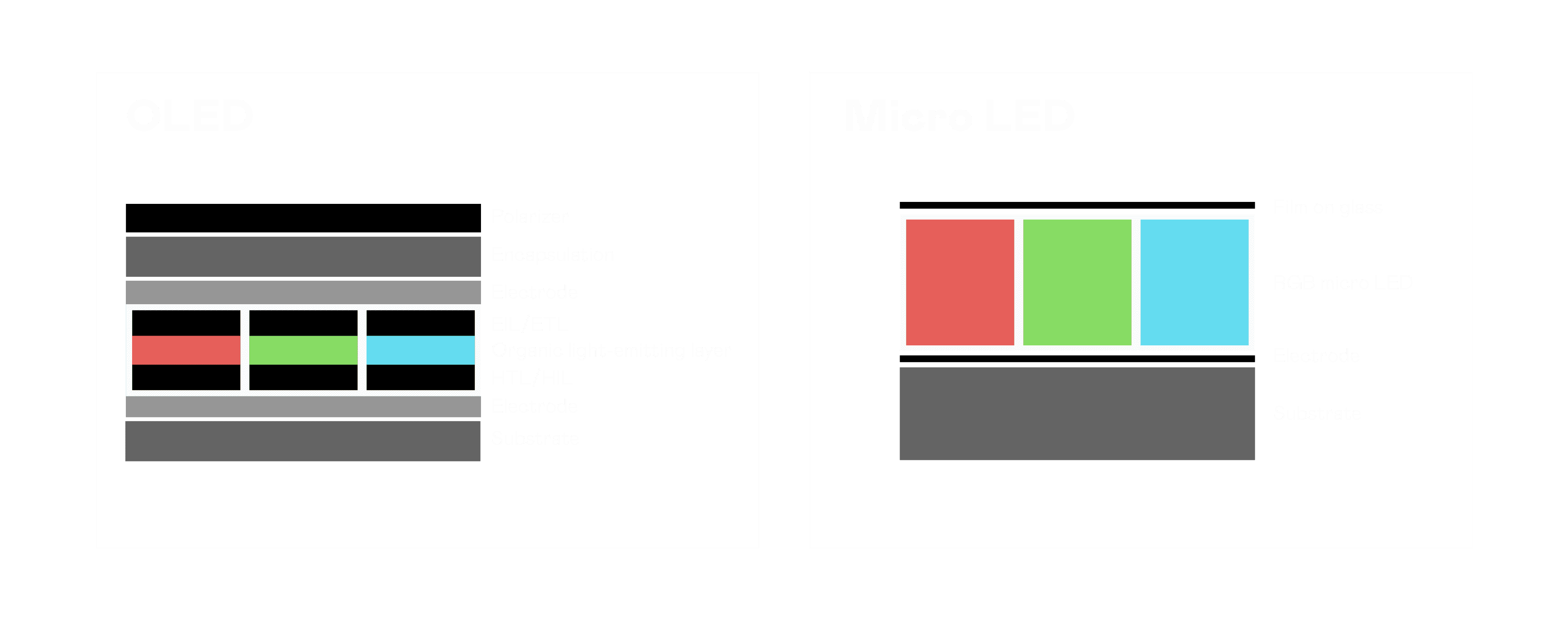 以 LED 做为显示画素,,,,可让 LED 的发光效率发挥到极致,,从而让显示器具备优异的亮度表现,,,不论是在户外或室内,,,,均具备出众的显示效果。。同时,,与使用有机材料的 OLED 相比,,LED 具备更稳定、、寿命更长的特性,,不仅不会有画面烙印问题,,,而且更不容易出现故障、、、、坏点。。。。